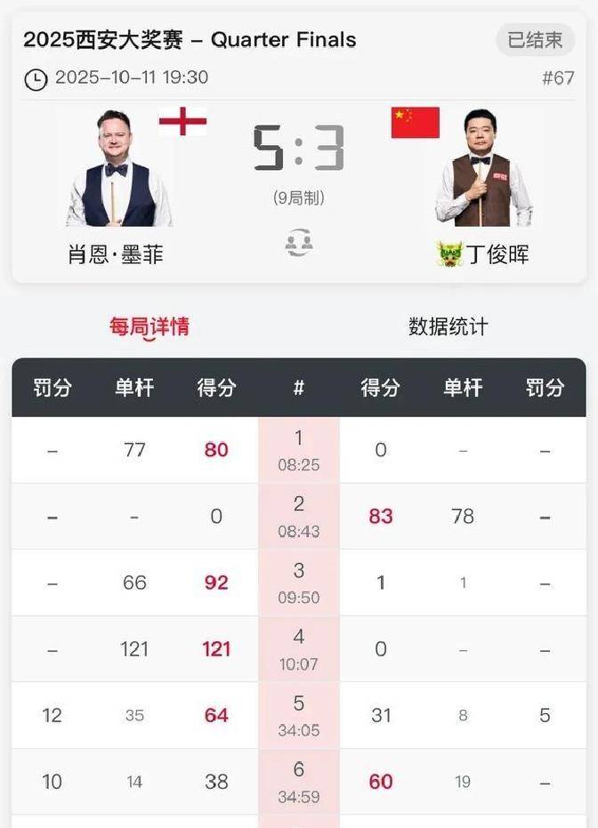 “中国一哥”丁俊晖的比赛也让观众心情起伏。他和老对手肖恩·墨菲的较量,就像“传奇之间的对话”。丁俊晖好几次想逆转,让人看得心潮澎湃。可墨菲状态太好了,4 - 1的比分让胜利好像偏向了他。虽然丁俊晖靠经验和技术连追两局,但最后还是没成功,这让中国球迷很遗憾。更糟糕的是,“火箭”奥沙利文在和加里·威尔逊的比赛中意外输了。斯诺克赛场就是这么残酷,球迷正期待着呢,它就给人泼冷水。